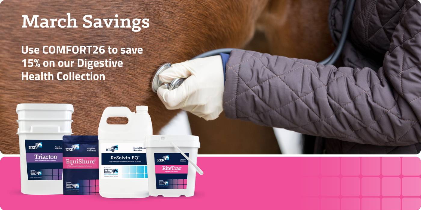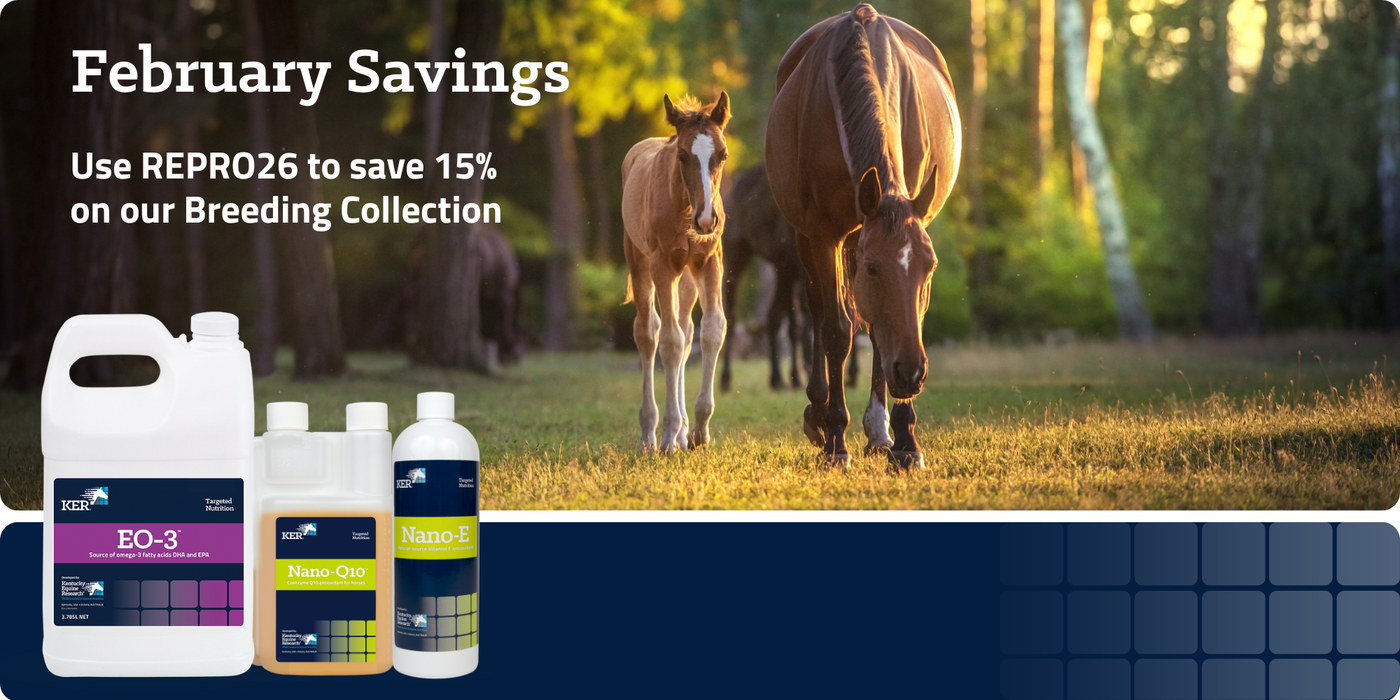 Get the latest news on equine nutrition and health and special offers from KER, plus a coupon for 10% off your first order.