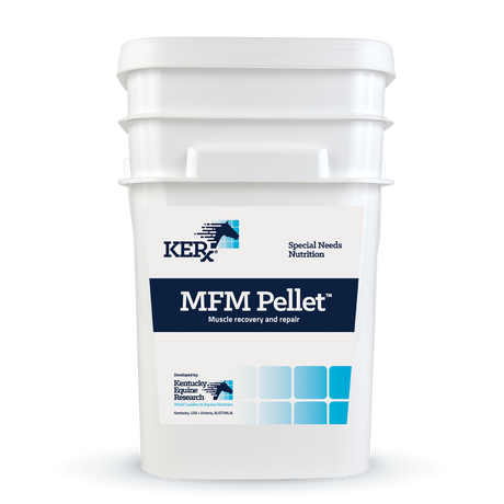MFM Pellet™ Muscle recovery and repair. Use MFM Pellet to increase the amount of key amino acids and high-quality protein to protect the muscle from oxidative stress and rebuild damaged muscle fibers in horses with myofibrillar myopathy.