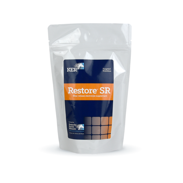 Feeding a concentrated electrolyte dose causes an immediate surge in blood electrolyte levels. That’s the desired effect, right? Yes, but a concentrated dose also stimulates increased excretion of electrolytes, flushing out the electrolytes you just fed and shortchanging the horse of vital supplementation. When sodium is delivered slowly over a period of time, it is fully absorbed and utilized by the body. Restore® SR helps horses retain the electrolytes you provide so they can replenish their reserves in the most optimal manner—slowly.